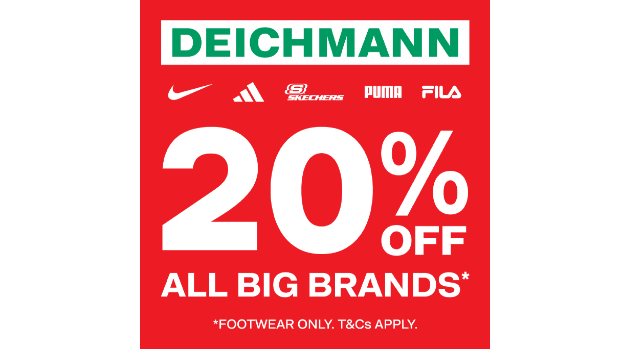 Step into savings with 20% off all big brand footwear at Deichmann. From sporty favourites to everyday classics, find the perfect pair for every style and every step.
